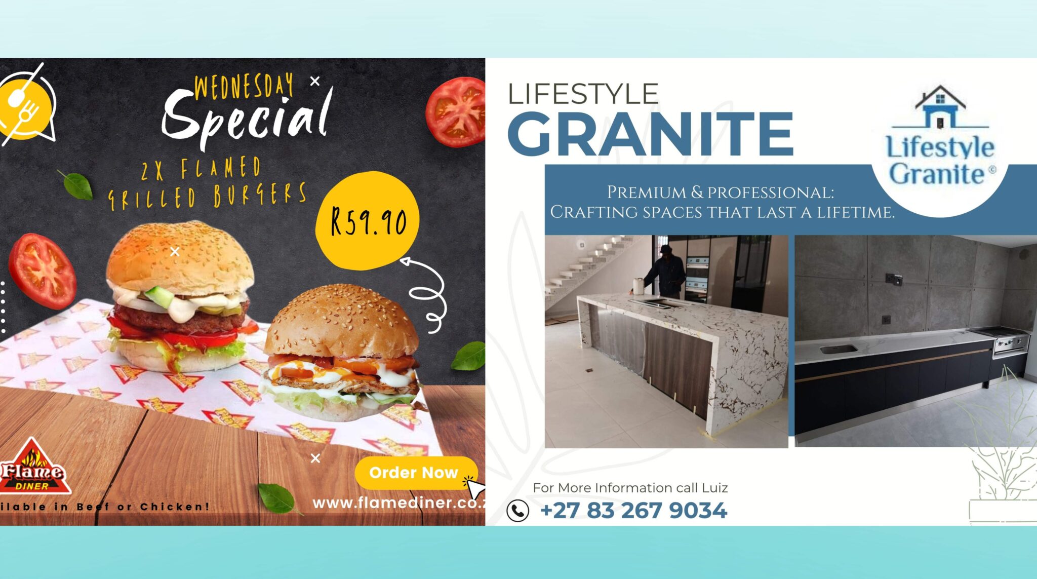 We’ve worked closely with brands like Flame Diner and Lifestyle Granite, creating designs that not only look good but actually perform.
